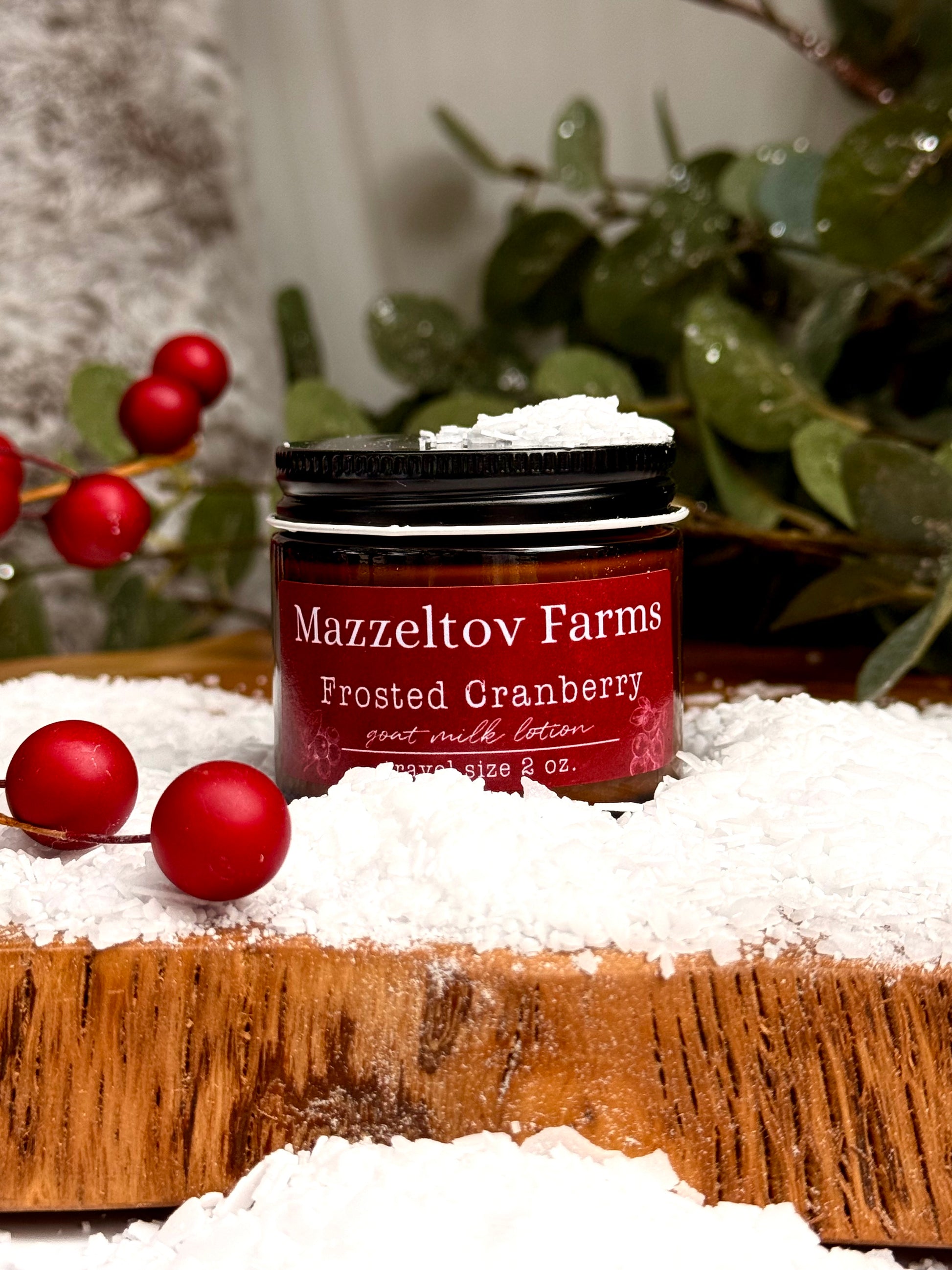 Our Frosted Cranberry Goat Milk Lotion is a lightweight, fast-absorbing moisturizer crafted to deeply hydrate and nourish your skin. Enriched with pasteurized goat milk, avocado oil, shea butter, and mango butter, this creamy blend restores softness and smoothness without leaving a greasy residue.
